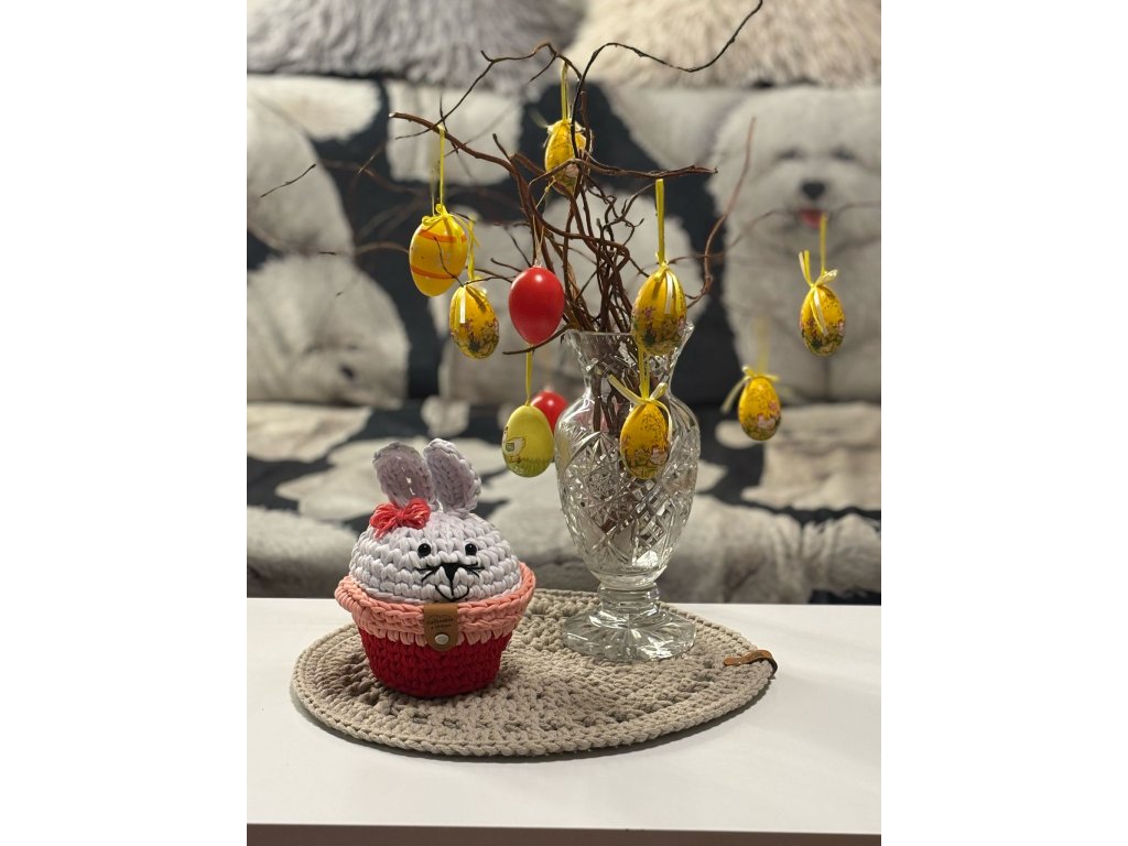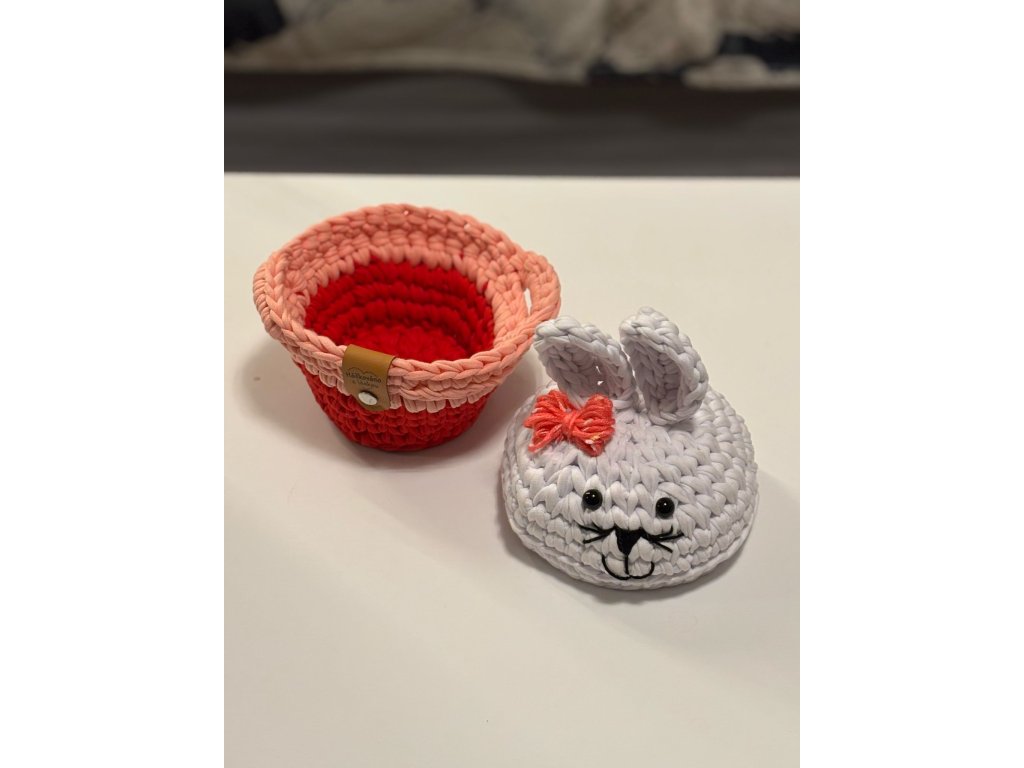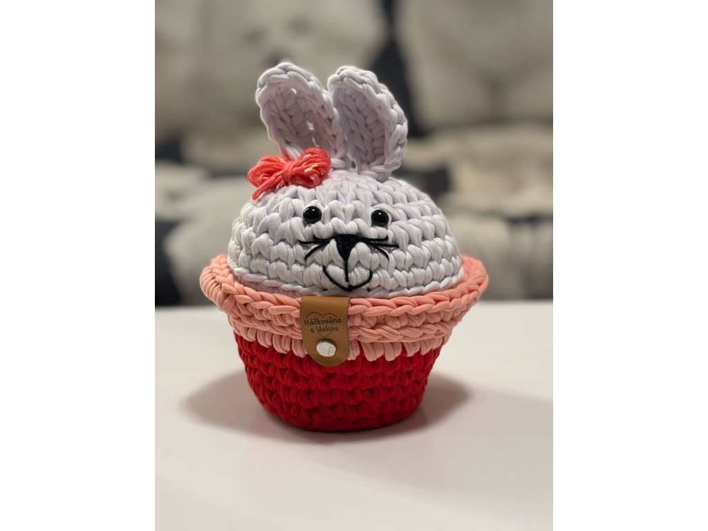 Háčkovaný zajíček v košíčku s oušky