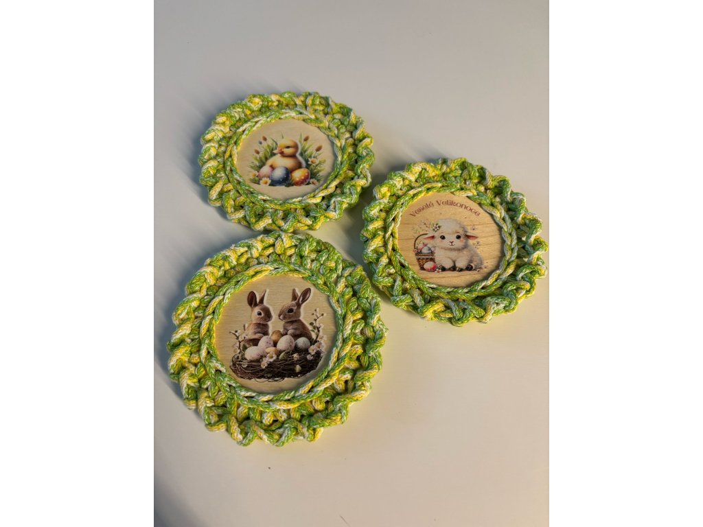 Sada 2 kusů ručně vyrobených velikonočních podtácků.